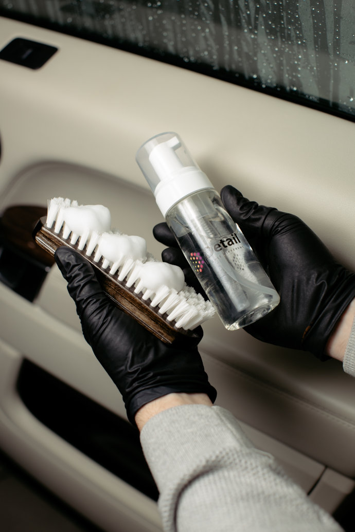 Stosując pianowniczkę, zmniejszamy ilość zużywanego preparatu, a tym samym pozwala nam to odpowiednio rozprowadzić preparat Leather Clean na powierzchni czyszczonej. Dokładnie a zarazem delikatnie przeszoruj element po elemencie Twojej tapicerki i wytrzyj do sucha przy pomocy lekko wilgotnej mikrofibry.