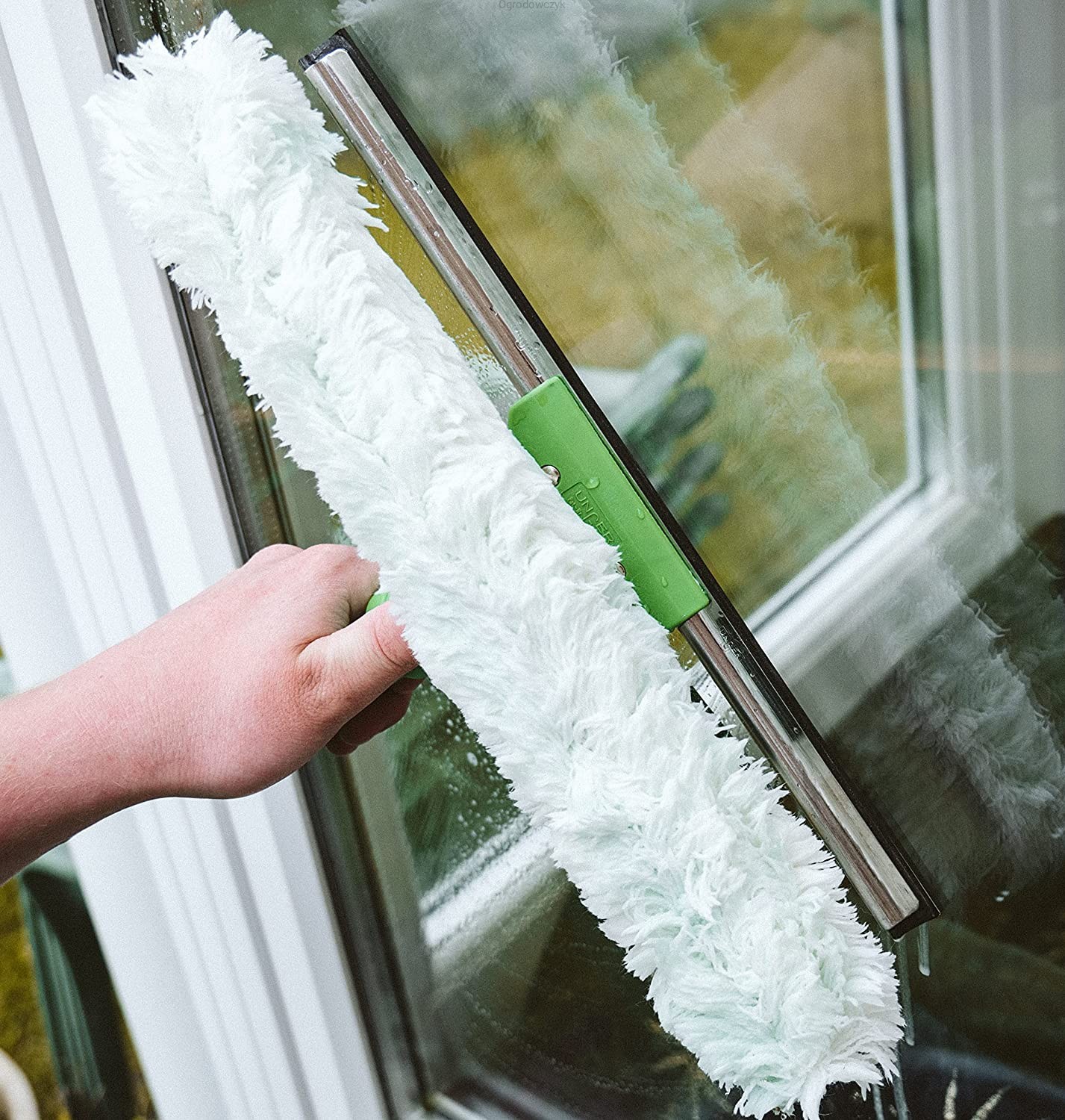 Ściągaczka i myjka w jednym. W komplecie z listwą S, oryginalnym pokrowcem z tkaniny mieszanej i miękką gumą.
